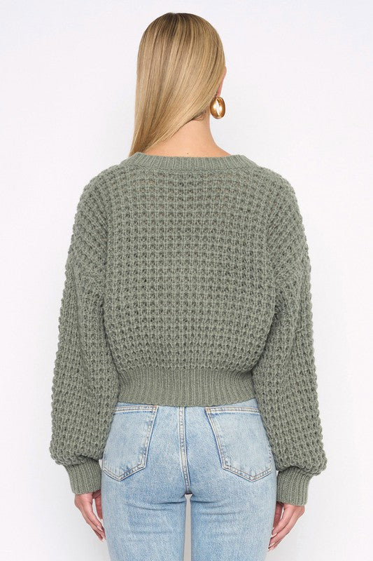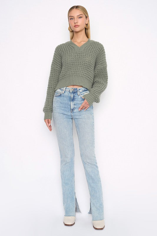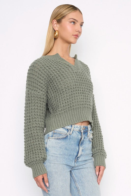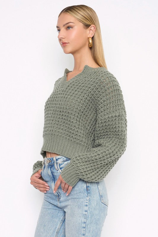 This sage split neck semi-crop sweater is ultra-soft and lightweight, making it perfect for easy, stylish wear. Dress it up or down effortlessly to suit any occasion.