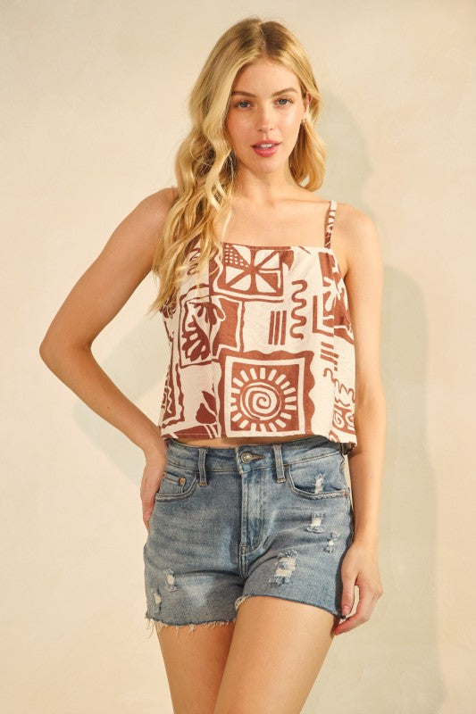 This flowy cami summer crop top features a square neck, open back with button details, and is made from a soft blend of 90% rayon and 10% nylon for comfortable wear.