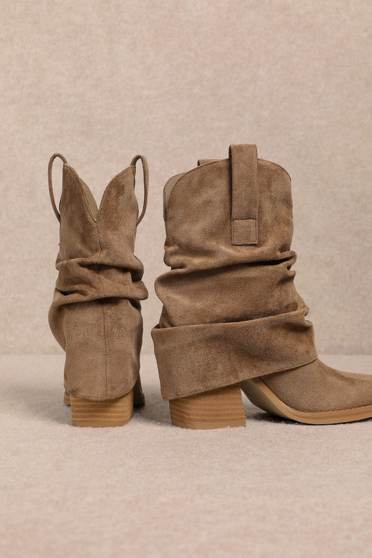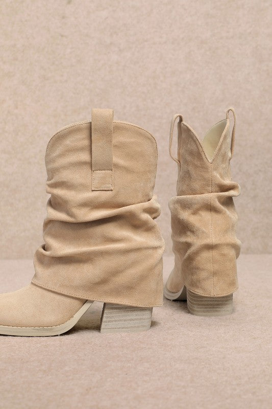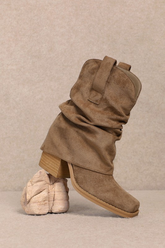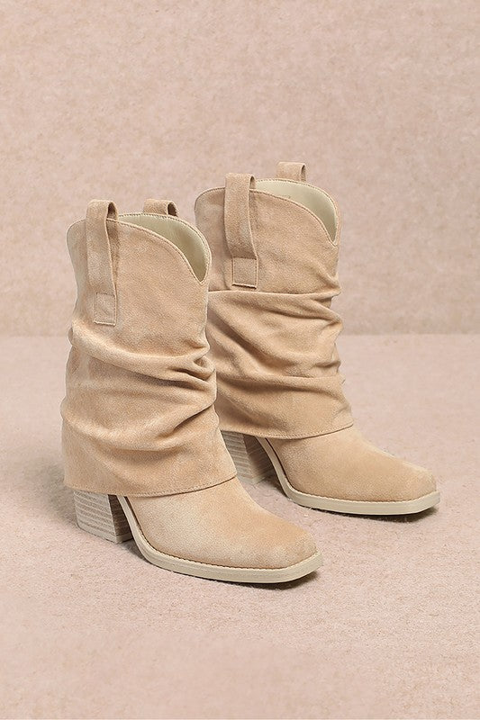 The Jackson boot features a chunky square toe and block heel peeking out from a foldover design with a curved topline.