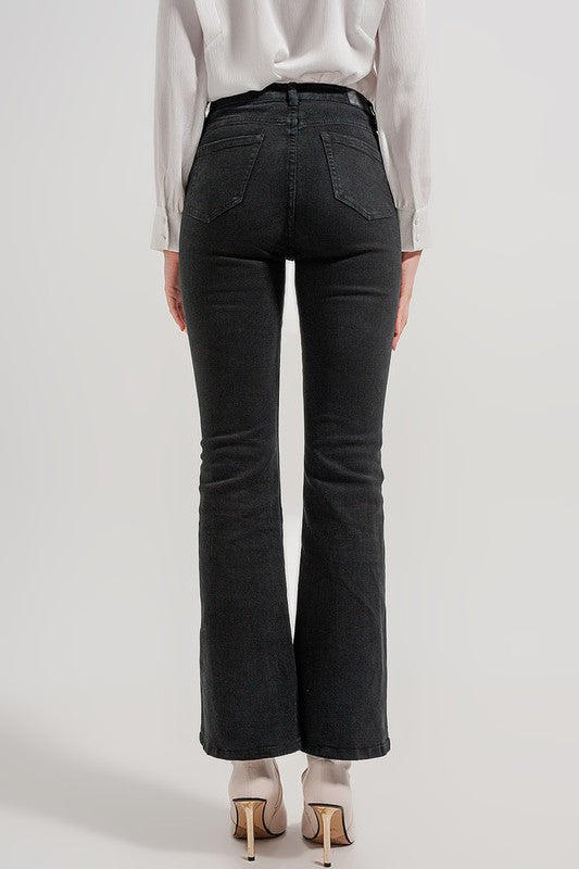 The model, measuring 32-24-35 and standing 6", is dressed in a size S. This regular fit maxi-length denim features a high waist and standard length, designed to flatter while providing comfort. Crafted from stretch denim, it includes belt loops, functional five-pocket styling, a zip closure, and a subtle flare for a casual yet polished look. True to size, it’s perfect for effortless everyday wear.