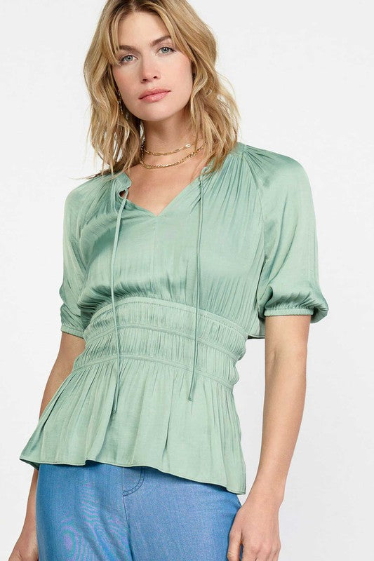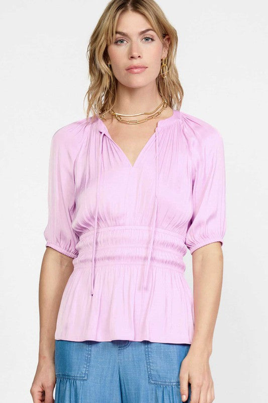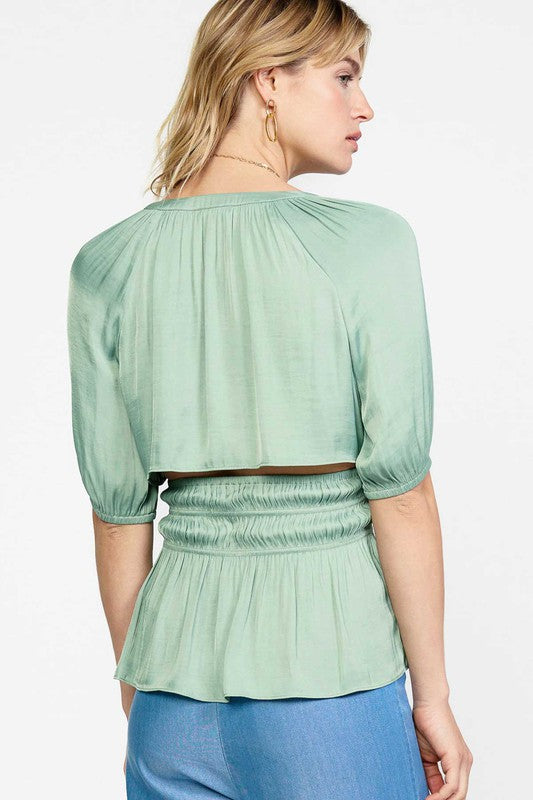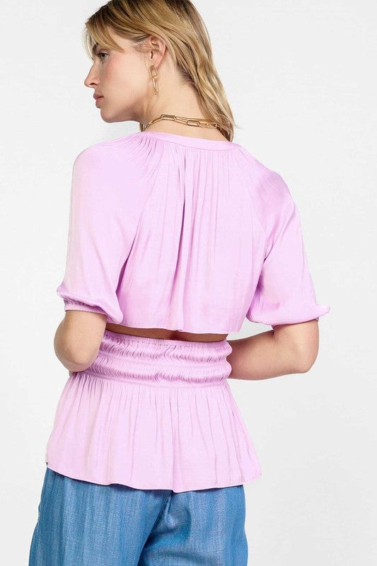 Forever femme and just as flattering, this sweet and chic top is a diverse staple. Self tie with cut out back detail.
