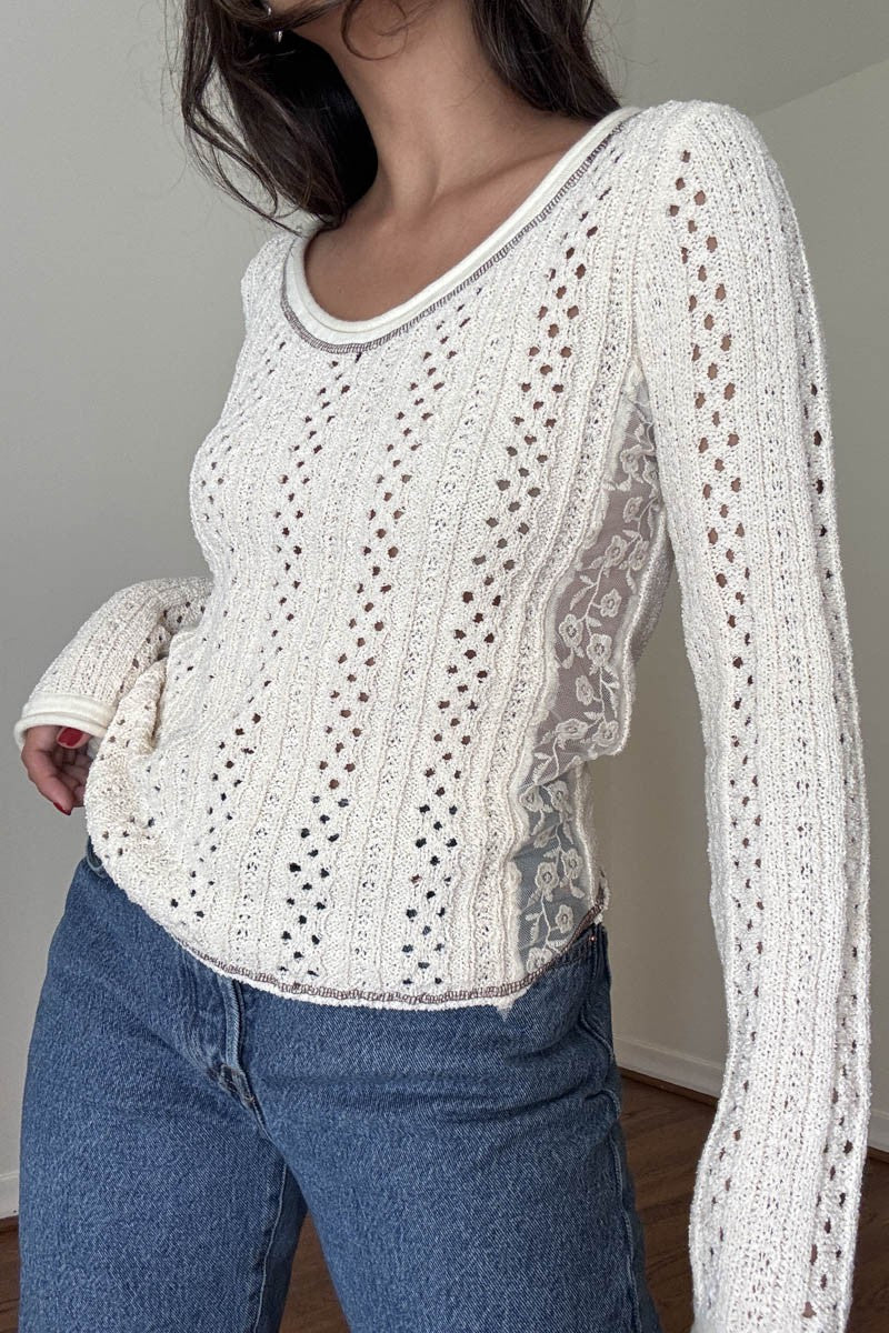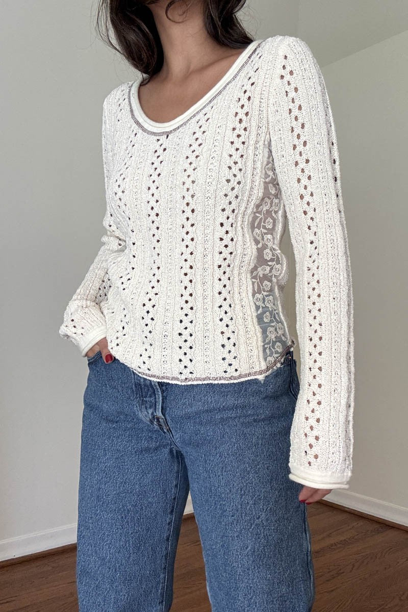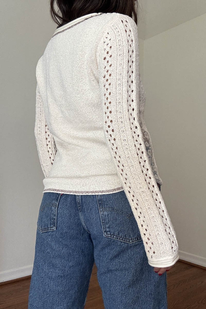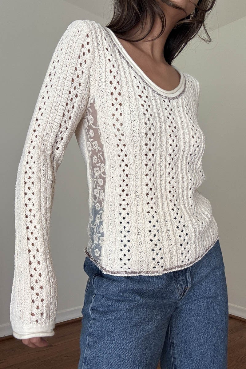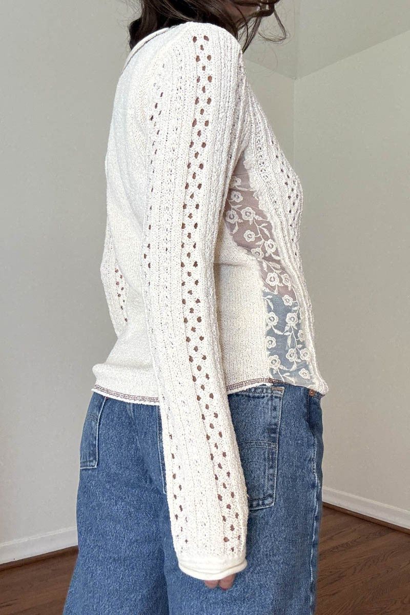 Knit Crochet Long Sleeve Top with Side Lace Detail l 40% Polyester, 40% Acrylic, 20% Nylon