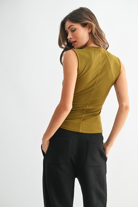 A forever essential. The Essential Micro-Ribbed Henley Tank Top is crafted from ultra-stretchy micro-ribbed fabric for a smooth, second-skin fit. Featuring a full-length silhouette, exposed seams for subtle edge, and classic snap button detailing down the front, this fitted tank is your go-to base layer for any season. Wear it solo or layered-either way, it's a staple.