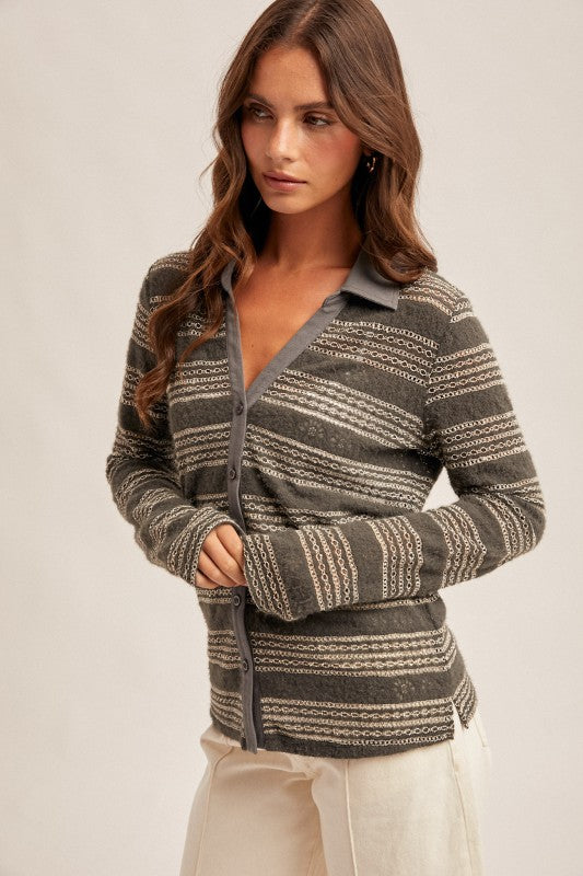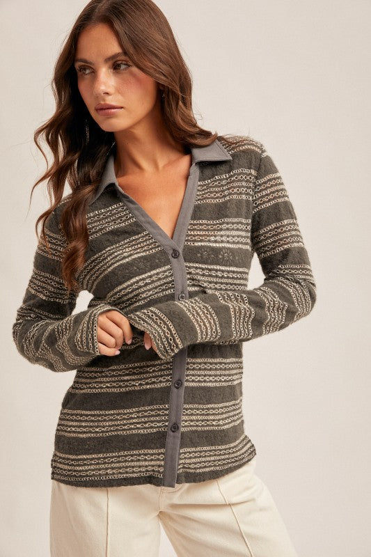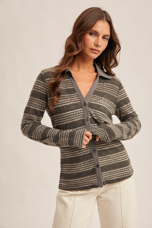 Effortless style meets comfort in this brushed two-tone lace button-down. Perfect for layering or wearing solo, it's your new go-to piece for looking put-together without trying too hard.