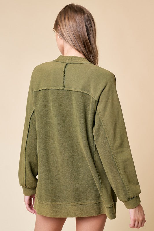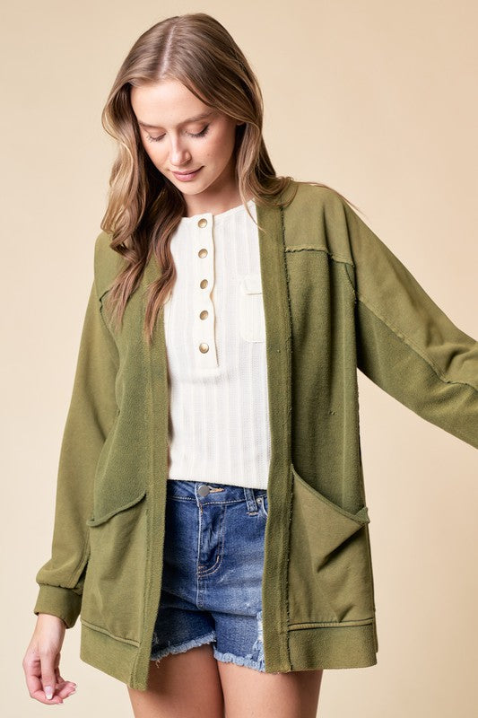 Experience comfort and style with this oversized cardigan, featuring a unique mineral washed finish and convenient pockets for everyday use.