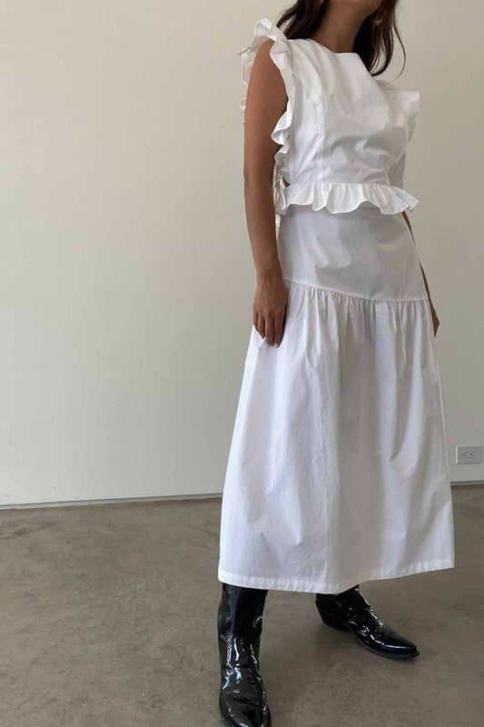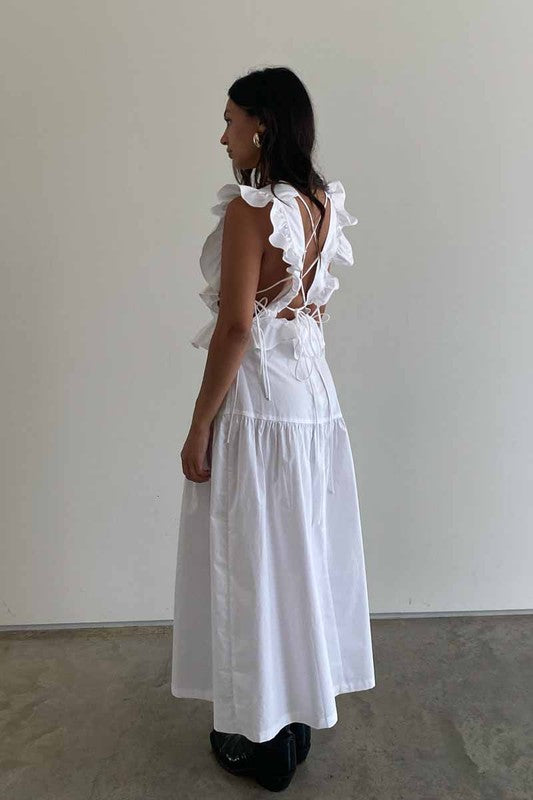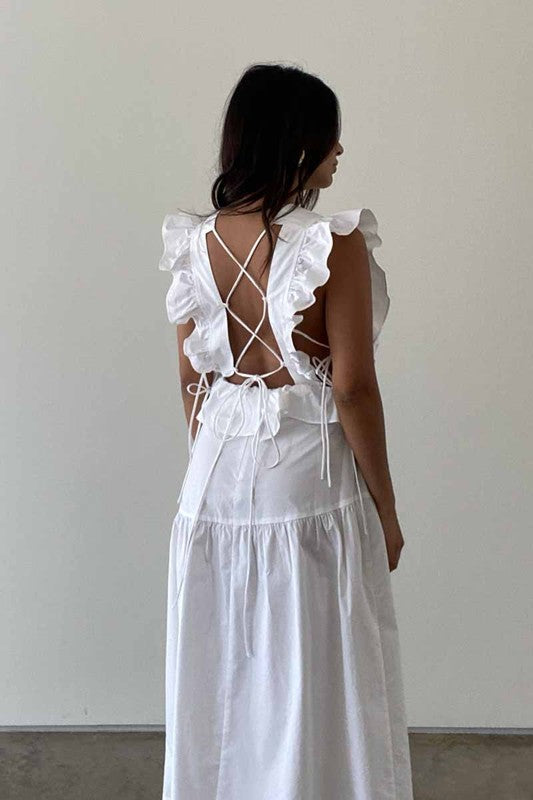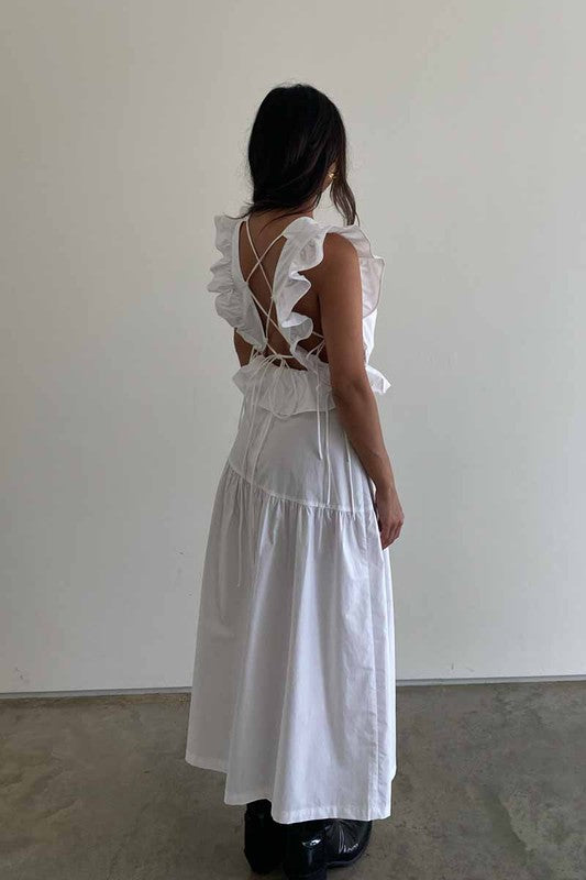 Stepping out and turning heads in this extra special dress design. Lace up side and ruffle details adds the perfect fusion of sexy and feminine. Endless ways to style from sneakers to heals.