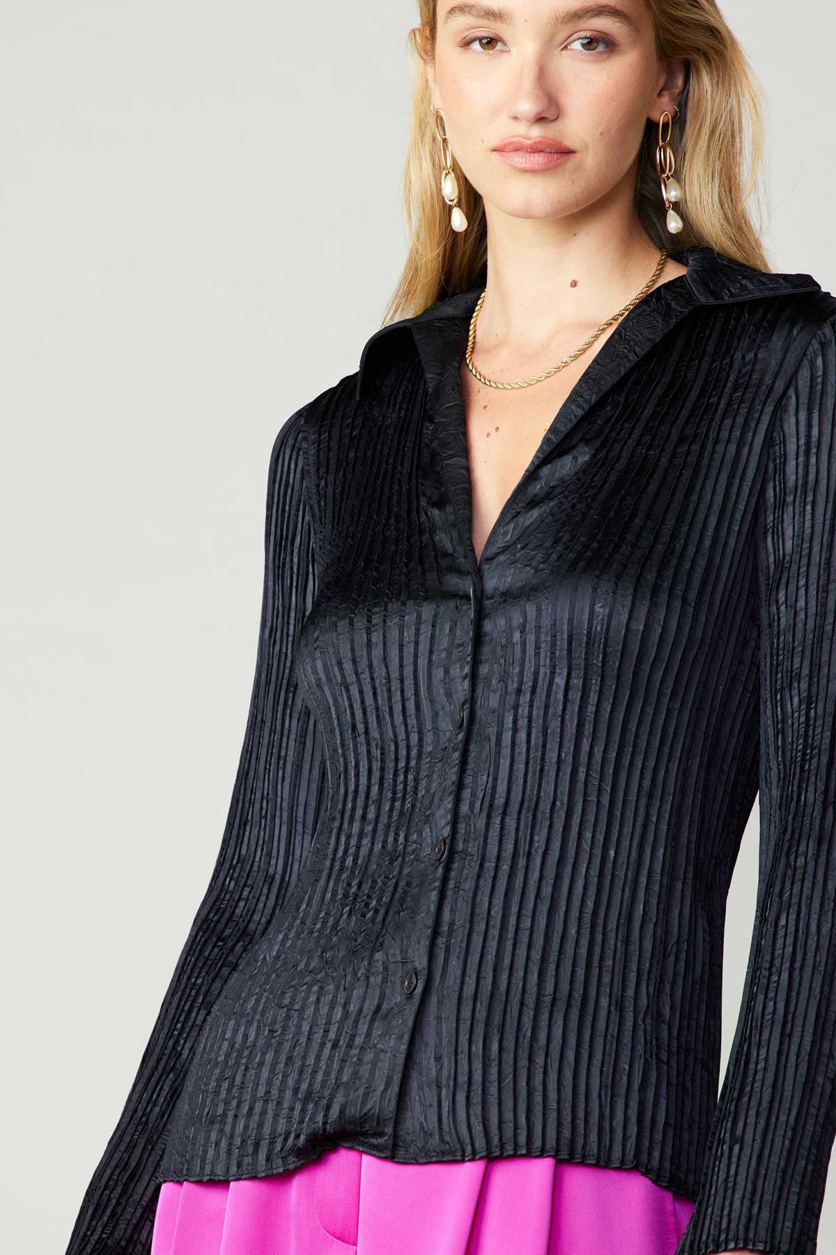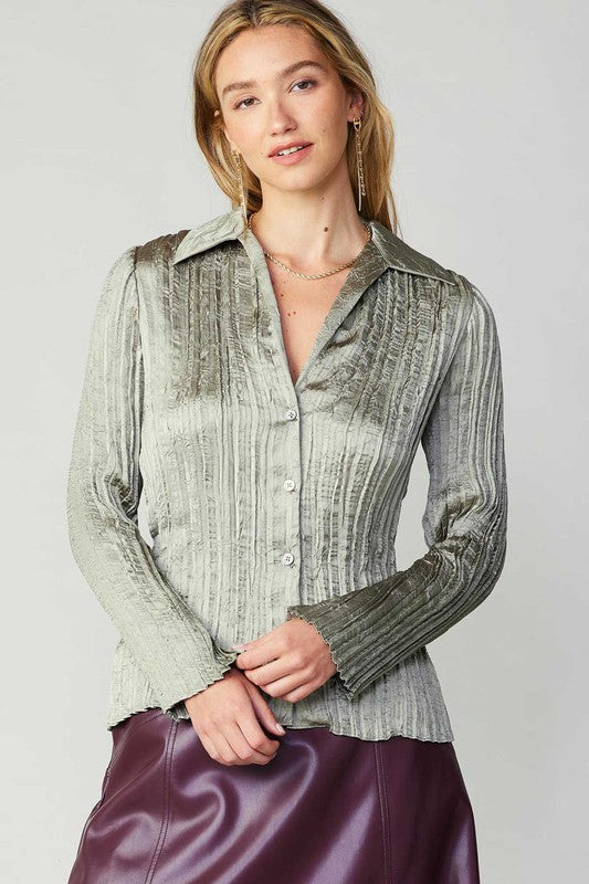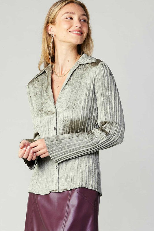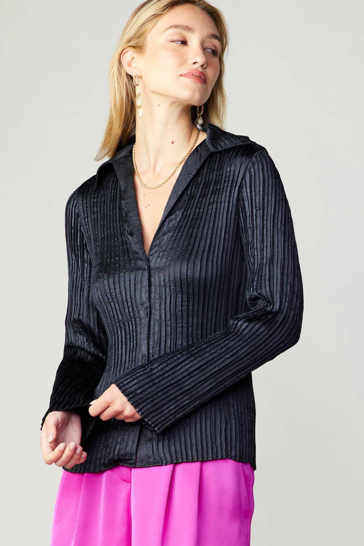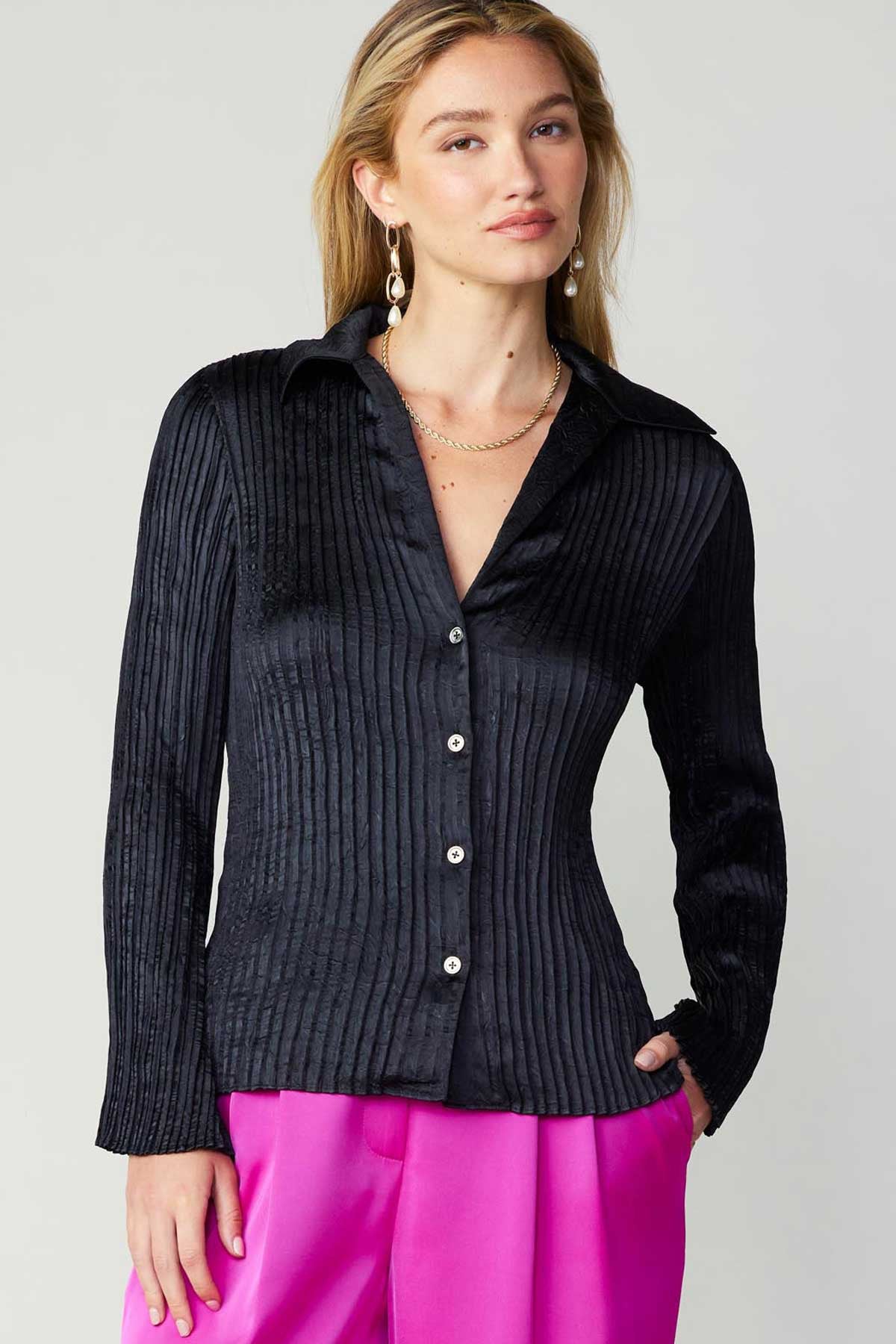 the Briar Blouse (2 color) offers a sophisticated and polished look. The lightweight 100% polyester fabric ensures comfort and durability, while the pleated long sleeves add a touch of elegance. Perfect for any occasion, this garment is a must-have in any wardrobe.