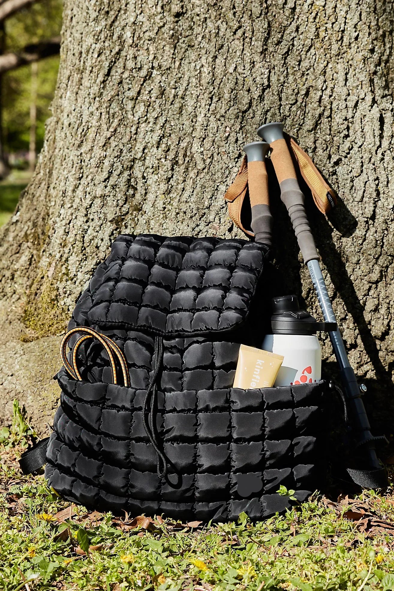 This versatile backpack is perfect for a day on the hiking trail or running errands, featuring a lightweight design and quilted material. With its functional flap-top closure, it can easily be used for the gym, a hike, or daily commute. Additional features include adjustable shoulder straps, bungee cord drawstrings, a zippered interior pocket, and various exterior pockets, making it the ideal carry-it-all companion.