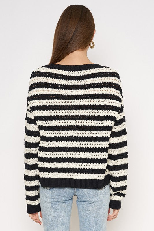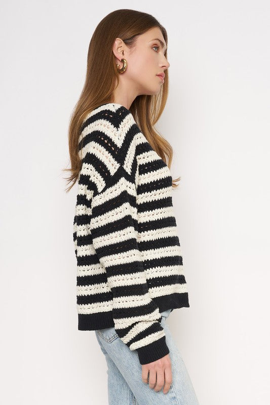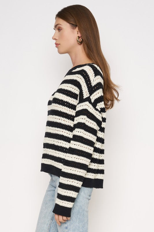 Experience effortless style with the Willow Sweater—a lightweight, loosely knit striped design featuring a classic crew neckline. Perfect for layering, it offers both comfort and a breezy feel for all-day wear.